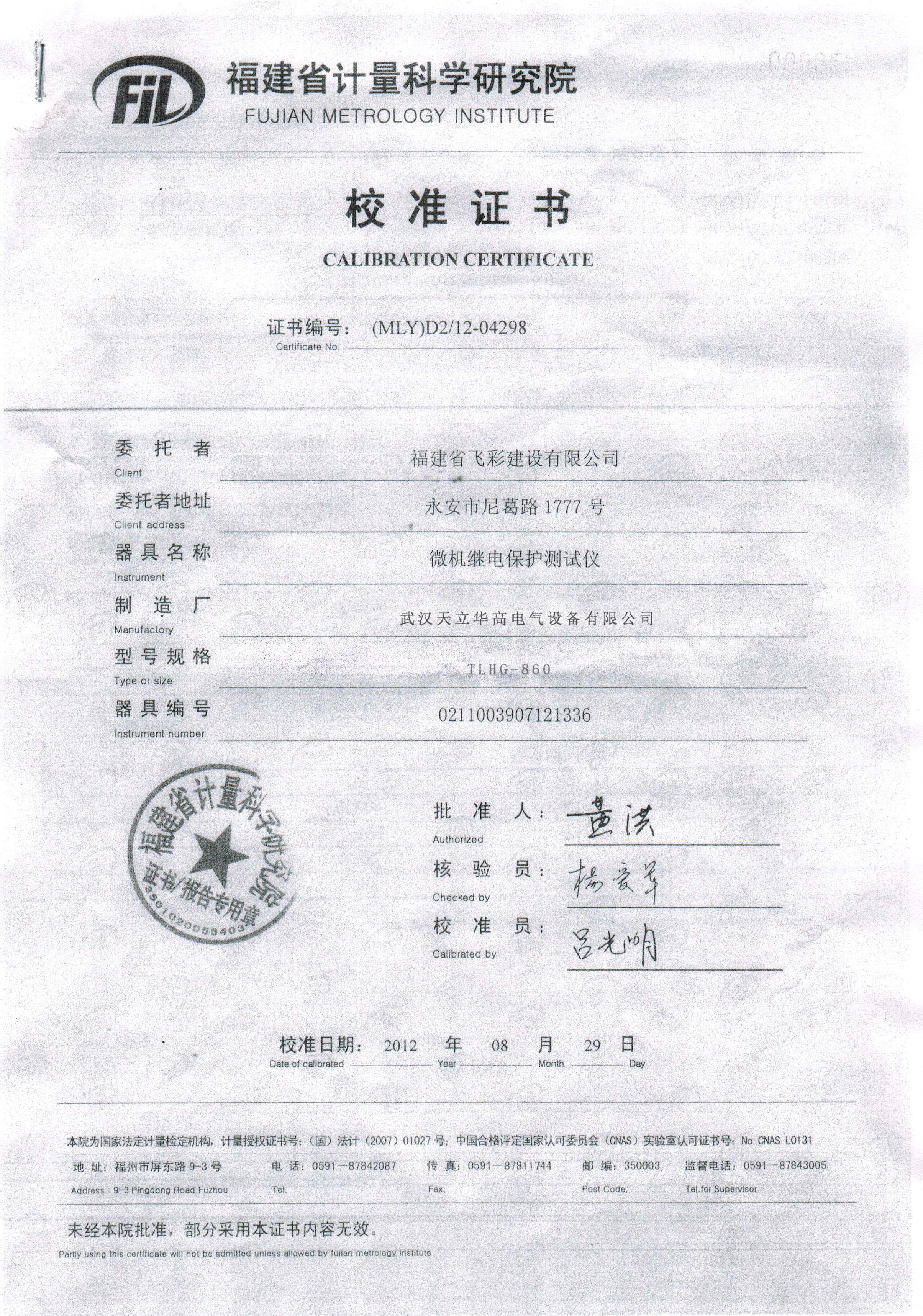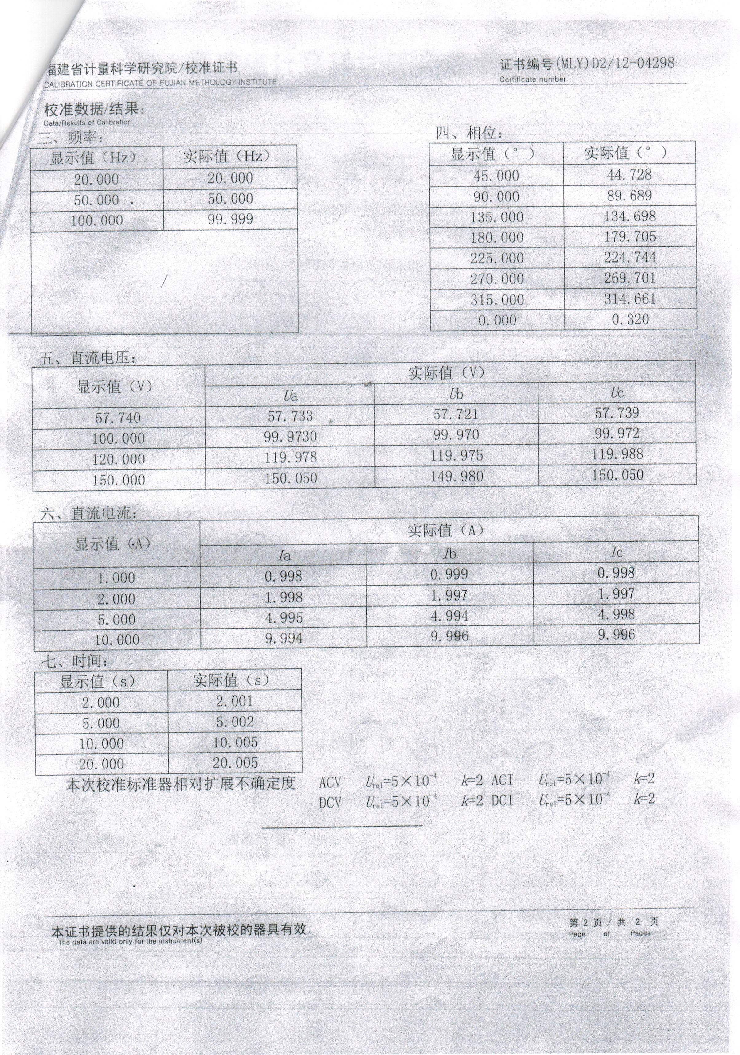 TLHG-860微機(jī)繼電保護(hù)測(cè)試儀鑒定證書