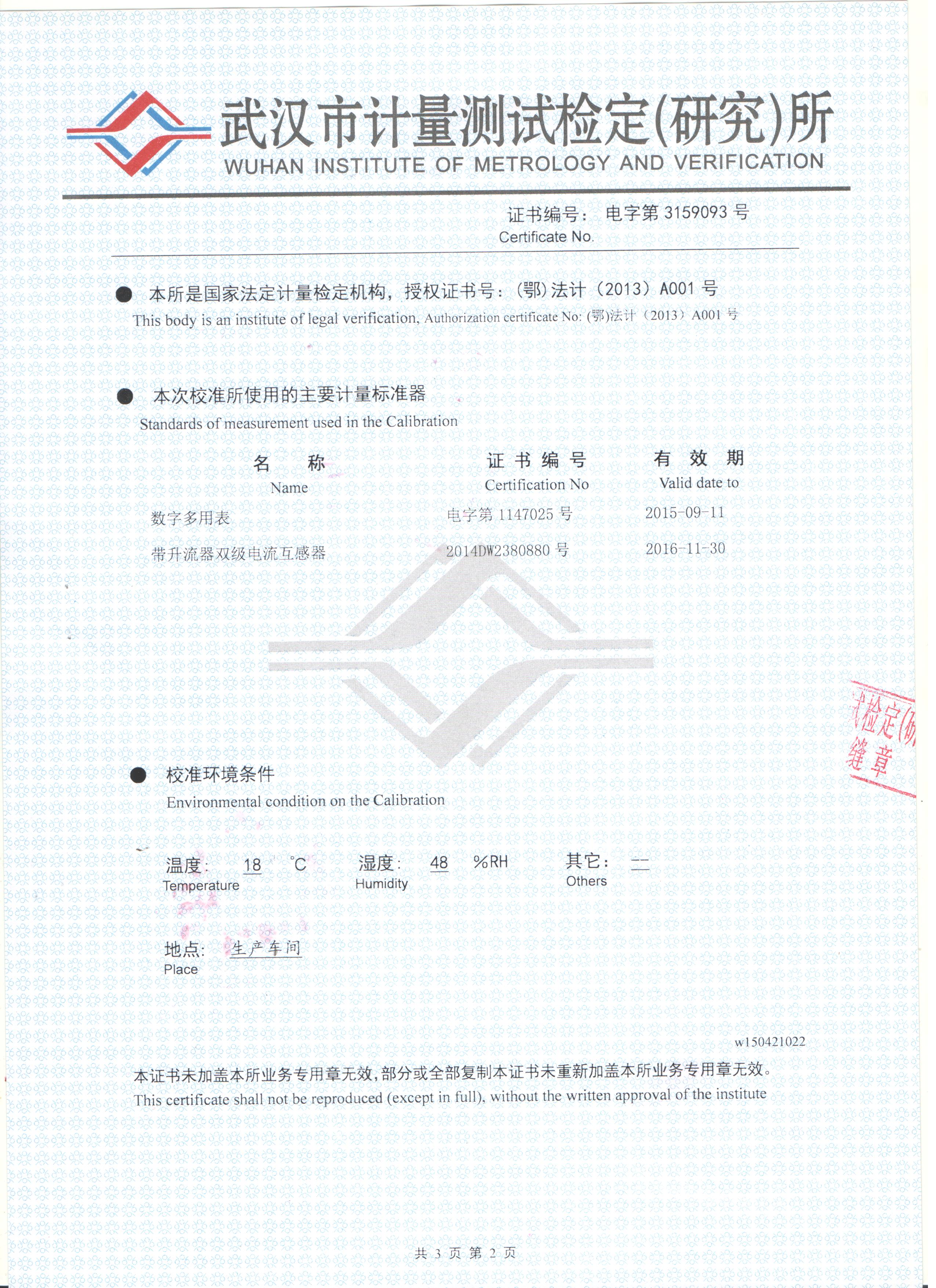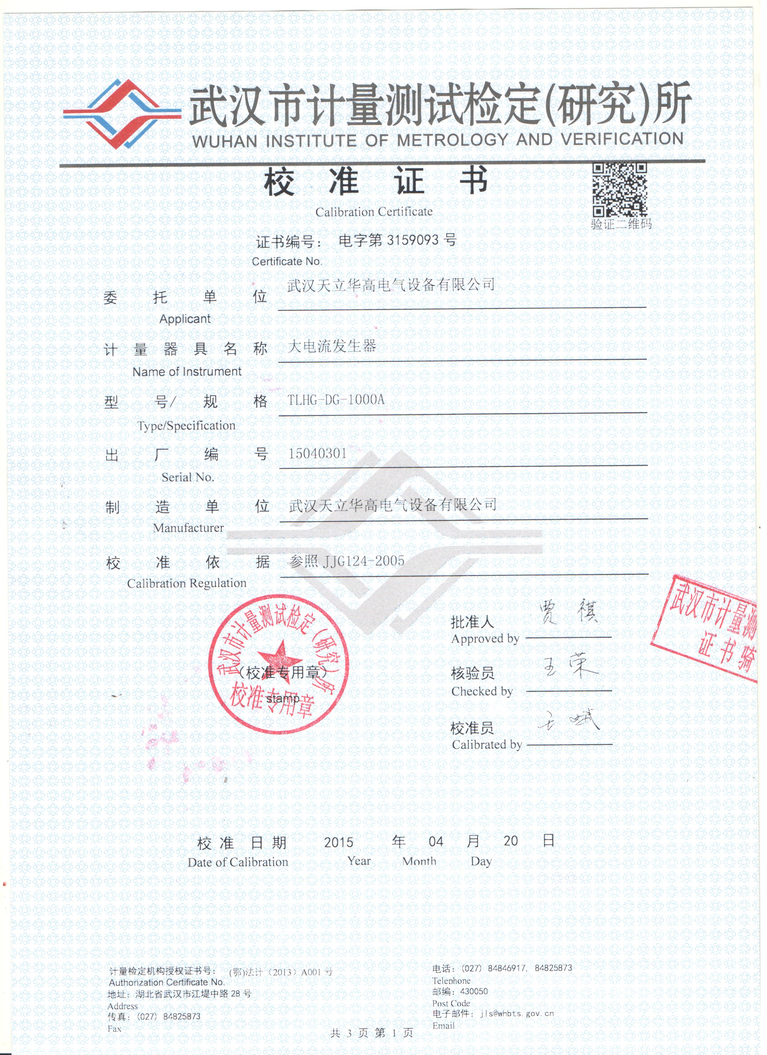 大電流發(fā)生器校驗(yàn)證書
